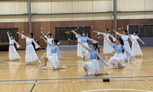 富士見丘中学高等学校バトン部です。本日はバトンの演技を合計6個披露させて頂ければと思います。バトン部は中高合同で練習しているので、中学生も一緒に参加させていただけることになりました!精一杯頑張りますので、応援の程よろしくお願いします。